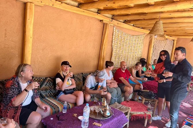 Zum Mittagessen gab es dampfenden Tajine aus Tontöpfen, süßlich schmeckenden Couscous und Minztee, der beim Fotografieren meine Kameralinse beschlug. Wir saßen an niedrigen Tischen unter gewebten Sonnendächern, während Kinder aus einem nahegelegenen Camp lachend vorbeiflitzten. Auf der Rückfahrt nach Marrakesch, mit Staub an den Schuhen, dachte ich immer wieder an diese Wüstensilence – sie begleitet einen noch lange nach Hause.