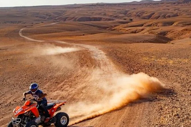 Verlasse Marrakesch für einen Tagesausflug in die Agafay Wüste – Quadfahren über felsige Pfade, Kamelreiten mit lokalen Guides und ein traditionelles marokkanisches Mittagessen unter freiem Himmel. Freu dich auf Spaß, Staub an den Schuhen und stille Momente, die lange nachwirken.