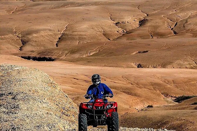 Dein Tag beinhaltet die Abholung und Rückfahrt von Marrakesch in einem klimatisierten Fahrzeug, einen lokalen Guide, der Englisch (und bei Bedarf Französisch oder Spanisch) spricht, einen Besuch in einer Arganöl-Frauenkooperative, eine halbstündige Quad-Tour (jeweils zu zweit pro Quad), einen Kamelritt bei Sonnenuntergang durch die Agafay Wüste sowie ein Berber-Buffet mit Live-Musik, bevor es zurück in die Stadt geht.