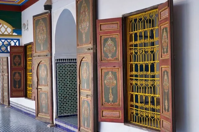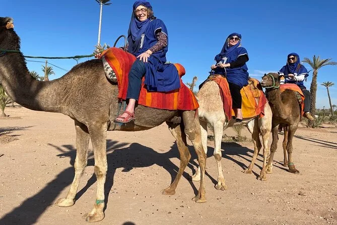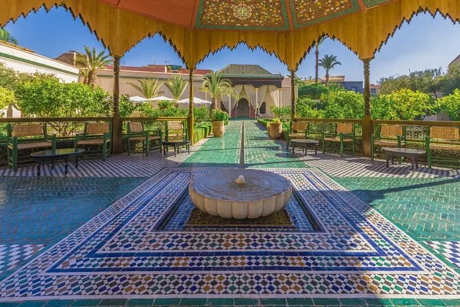Du besuchst oder siehst die Koutoubia-Moschee (Außenansicht), den Bahia-Palast, den Jemaa el-Fna-Platz, die Medina-Gassen, die Palmeraie für den Kamelritt sowie optional den Jardin Majorelle.