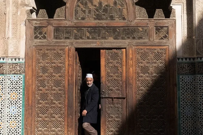 Unser Guide Youssef führte uns direkt in das Labyrinth der zum UNESCO-Weltkulturerbe gehörenden Altstadt. Ehrlich gesagt hätte ich mich ohne ihn in fünf Minuten verlaufen. Er zeigte uns winzige Details, die mir nie aufgefallen wären: handgeschnitzte Zedertüren, Katzen, die in Sonnenstrahlen dösten, und eine Bäckerei, in der Einheimische ihren Teig zum Mittagessen abgeben. Wir schlüpften hinein in Dar Bouanania und die Al-Attarine-Madrasa – beide Orte sind viel ruhiger, als man erwartet, doch jede Kachel erzählt eine Geschichte, wenn man genau hinsieht.