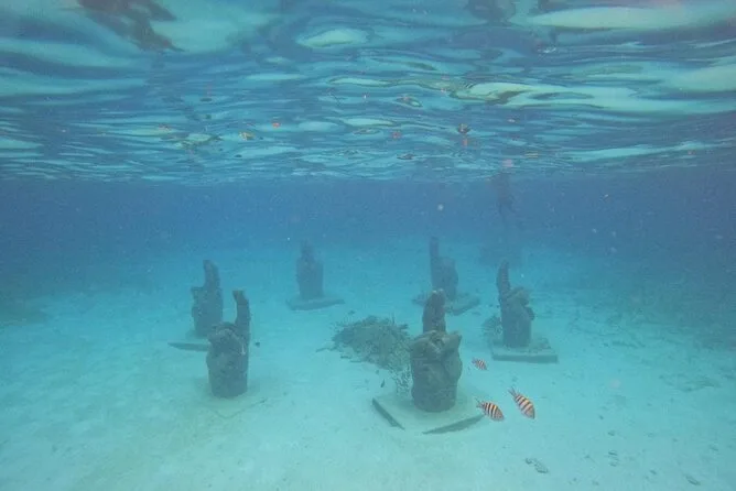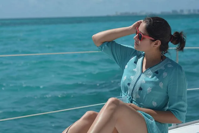 Los geht’s am Playa Tortugas Pier mit einem Katamaran und lokaler Crew, schnorchel über die Korallengärten des Meco Riffs, erkunde die bunten Murals und den North Beach auf Isla Mujeres in deinem Tempo, bevor es mit offener Bar zurückgeht – lachende Gesichter, salzige Haare und Erinnerungen, die lange bleiben.
