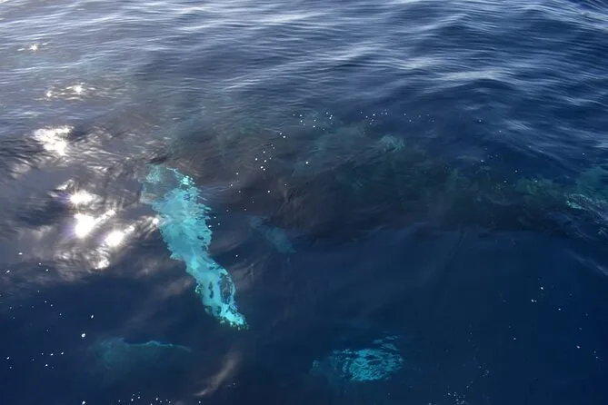 An Bord gab es Snacks und Kaffee (der schmeckte auf See irgendwie besser als sonst), dazu tropische Drinks, falls man Lust hatte. Die Tour dauerte etwa zwei Stunden, fühlte sich aber zeitlos an; manchmal lehnte jemand einfach am Geländer, in Gedanken versunken oder hoffte auf einen weiteren Schwanz, der hinter uns auftauchte. Nicht jeder Moment war spektakulär – oft war es nur das Plätschern des Wassers am Rumpf oder jemand, der über sein missglücktes Wal-Foto lachte (guilty as charged). Auf dem Rückweg fuhren wir nochmal an El Arco vorbei, die Sonne stand jetzt höher, alle blinzelten ein bisschen, wollten aber, dass der Tag noch nicht endet.