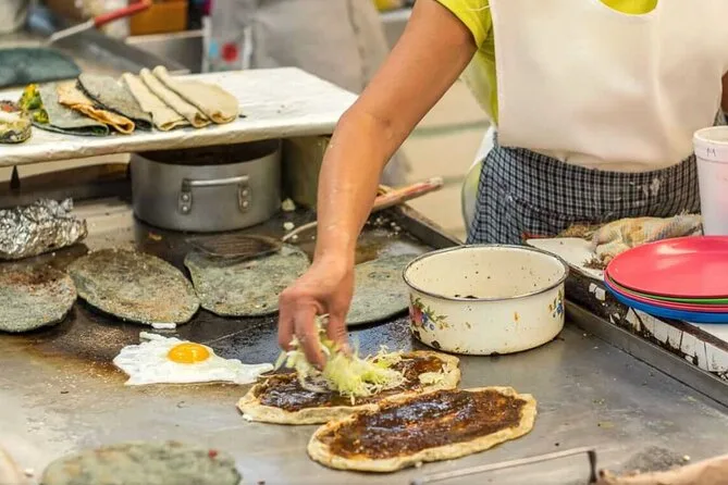 Die Tour dauert den Großteil des Tages, beginnt mit Frühstück im Zentrum von Mexico City und führt dann nach Xochimilco für Marktverkostungen und eine Bootsfahrt mit Mittagessen.