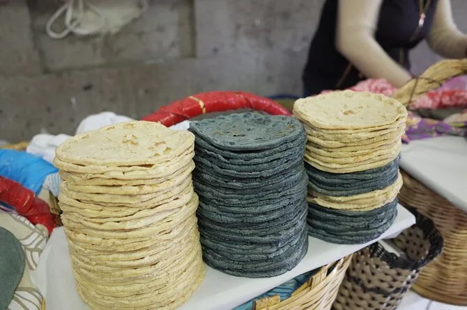 Du probierst Tlacoyos (Maisfladen), Tamales in Bananenblatt von Einheimischen, Chileatole (Maisgetränk) sowie saisonale Produkte vom Markt und von den Chinampas beim Mittagessen.