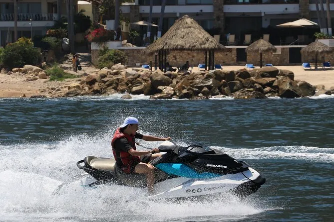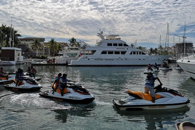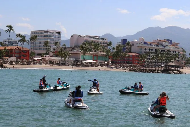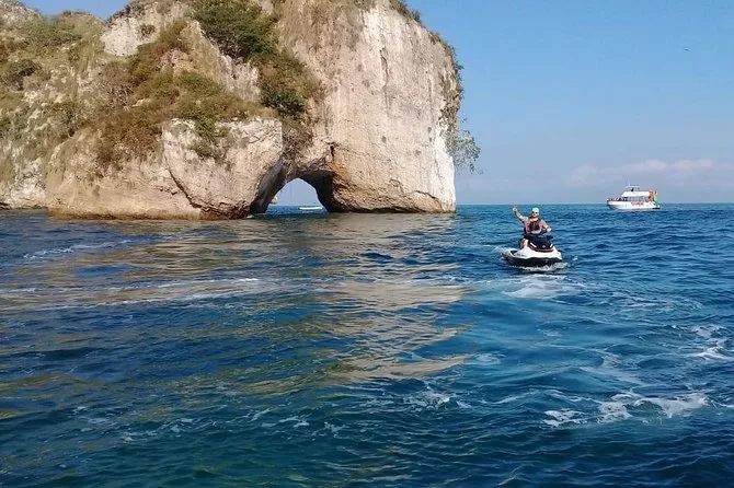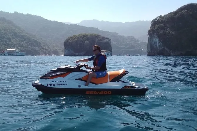 Dein Tag beinhaltet die Nutzung eines eigenen Einzel- oder Doppelsitz-Jet-Skis (inklusive Schwimmweste), eine Flasche Wasser für die Sonne, die komplette Schnorchelausrüstung für die Erkundung bei Los Arcos (wenn das Wetter passt) und die Begleitung eines lokalen Guides, der vor der Abfahrt von der Marina Vallarta alle Sicherheitsinfos auf Englisch und Spanisch erklärt – und dich sicher zurückbringt, wenn die Arme müde, das Lächeln aber noch da ist.