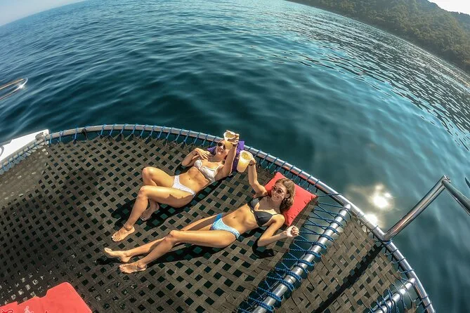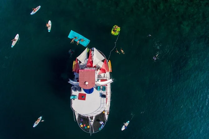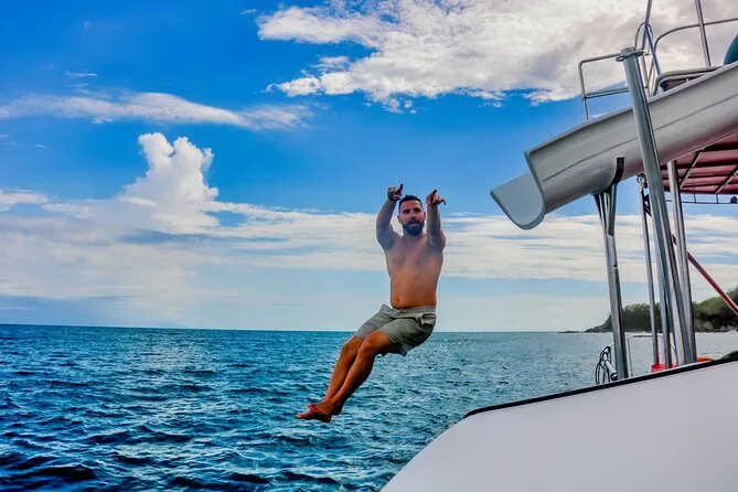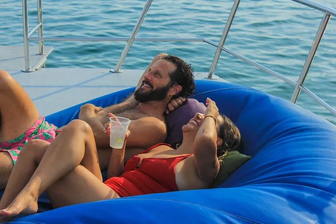 Privater Yachtausflug in der Bucht von Banderas mit Rutschen, Essen, Drinks & Spielzeug