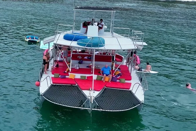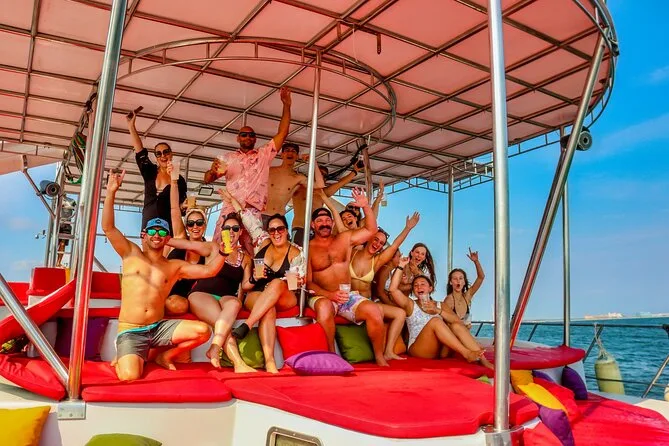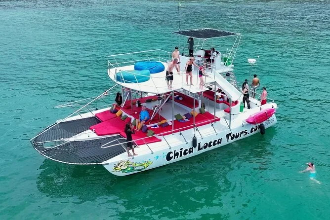 Dein Tag beinhaltet die Nutzung aller Wasserrutschen und Wasserspielzeuge – Kajaks, Paddleboards, Schnorchelausrüstung – sowie eine Open Bar mit allem von Säften bis Margaritas und Bier. Frisch zubereitete Guacamole und Ceviche mit blauen Maistortilla-Chips werden an Bord serviert; ein warmes mexikanisches Fajita-Mittagessen kannst du gegen kleinen Aufpreis dazubuchen. Wähle einfach deinen Treffpunkt vor der Buchung, damit alles reibungslos läuft.