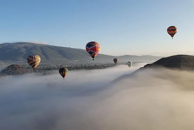 Schwebe bei Sonnenaufgang im Heißluftballon über die Pyramiden von Teotihuacan, erkunde die antiken Straßen mit einem lokalen Guide, koste Pulque direkt vor Ort und genieße ein Mittagessen in einem familiengeführten Lokal. Von stillen Morgenstunden bis zu herzhaftem Lachen – dieser Tagesausflug verbindet beeindruckende Momente mit kleinen Erlebnissen, die in Erinnerung bleiben.