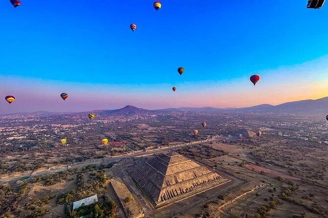 Dein Tag beginnt mit Abholung am frühen Morgen in Mexiko-Stadt (wenn ausgewählt), alle Eintrittsgelder für Teotihuacan und die Basilika von Guadalupe, eine Heißluftballonfahrt mit Sekt zum Anstoßen nach der Landung sowie ein Frühstück danach. Dazu gibt es geführte Touren mit Stopps für Obsidian-Demonstrationen und Tequila-Verkostung, bevor du am Abend zurückkehrst.