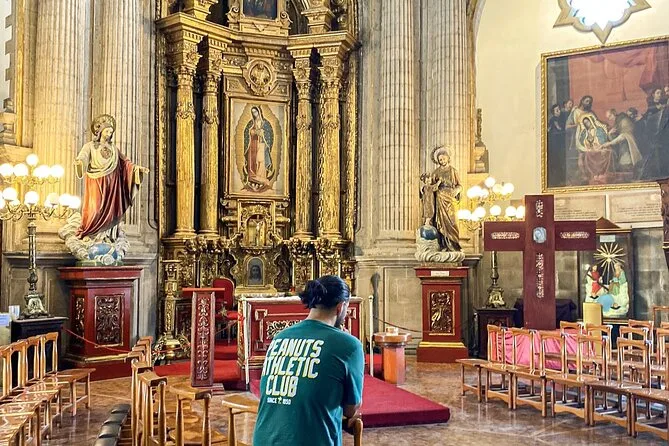 Du bekommst Frühstück, eine geführte Tour durch die Ruinen von Teotihuacan, Besuch einer Obsidian-Werkstatt mit Tequila-Verkostung, Mittagessen (auf eigene Kosten) und eine Führung durch die Basilika von Guadalupe.