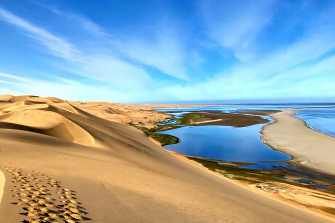 Mit dem 4x4 geht es tief hinein in Sandwich Harbour, wo du wilde Vögel an der Lagune von Walvis Bay beobachten kannst, bevor du die Dünen erklimmst, wo Wüste auf Meer trifft. Lach mit deinem Guide beim Bezwingen der steilen Sandhänge, genieße eine kühle Erfrischung mit Ausblicken, die kein Foto ganz einfängt, und kehr zurück – mit Sand in den Schuhen und vielleicht ein paar neuen Geschichten.