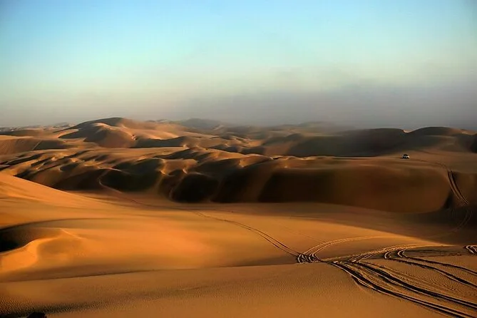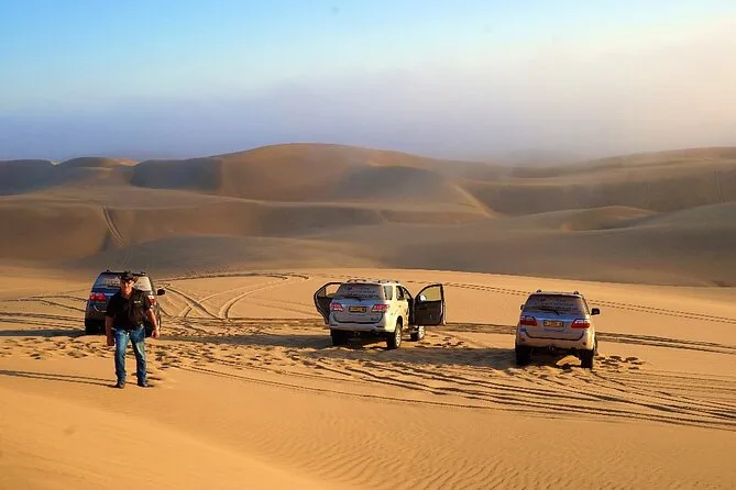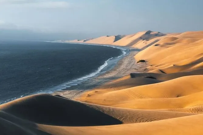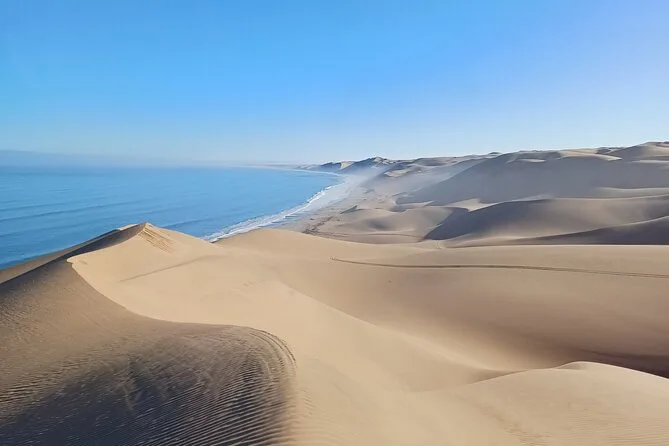 Auf dem Rückweg stand die Sonne schon tiefer, und Schatten zogen sich über die Landschaft – sogar ein paar Springböcke in der Ferne schienen für einen Moment golden zu leuchten. Ich denke immer noch an diesen Anblick, wie die Wüste plötzlich und ohne Vorwarnung auf den Ozean trifft. Wenn du von einem Kreuzfahrtschiff kommst oder in der Nähe wohnst, ist dieser Tagesausflug mit Abholung super einfach. Am Ende waren meine Schuhe voller Sand, aber das störte mich nicht – es fühlte sich an wie ein Beweis, wirklich dort gewesen zu sein.