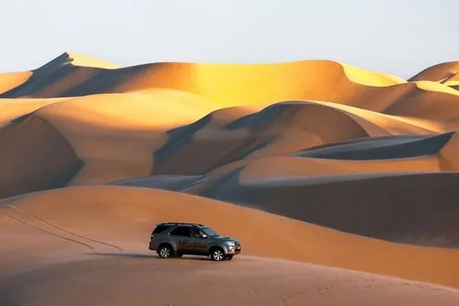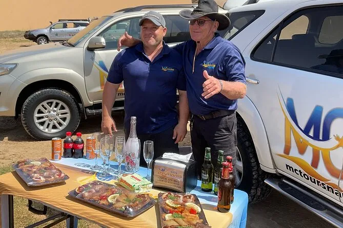 Dein Tag beinhaltet die Abholung vom Kreuzfahrtschiff (oder Treffpunkt vor Ort), eine geführte 4x4-Fahrt durch die beweglichen Dünen und Küstenlandschaften von Sandwich Harbour, viele Möglichkeiten, Vögel und Wildtiere an der Walvis Bay Lagune zu entdecken, sowie kaltes Bier und andere Getränke – bevor du mit sandigen Schuhen und tollen Erinnerungen zurückkehrst.
