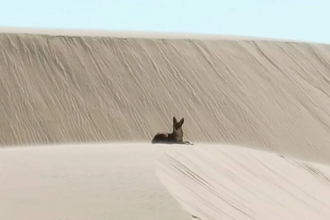 Dann kam mein Lieblingsteil: die Fahrt direkt in die Namib-Wüste. Die Sanddünen schienen endlos und lebendig – manchmal huschte ein Springbock zwischen ihnen hindurch oder man entdeckte eine robuste Welwitschia-Pflanze, die sich an einem Ort hielt, wo sonst nichts wächst. Die Sonne brannte um die Mittagszeit, doch unser klimatisierter 4x4 machte es leicht, weiter zu erkunden, ohne zu schwitzen.