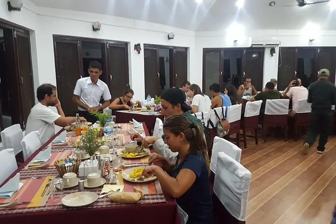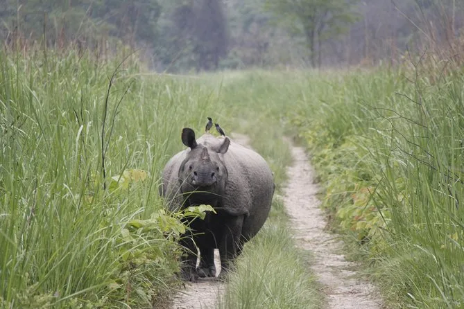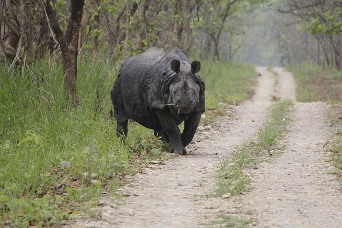 Deine Tage beginnen mit der Abholung per Touristenbus von Kathmandu oder Pokhara, alle Mahlzeiten sind inklusive – auch ein Lunchpaket für die Nacht im Dschungelturm. Am Ankunftstag gibt es eine geführte Kanufahrt, danach übernachtest du hoch oben im Baum mit deinem Guide und Ranger in der Nähe. Am nächsten Morgen erwartet dich Frühstück im Turm, gefolgt von geführten Spaziergängen durch die wildesten Ecken Chitwans auf der Suche nach Spuren oder Tiersichtungen, bevor es zum Mittagessen zurückgeht. Später steigst du in einen offenen Jeep für die Safari, um Nashörner und Hirsche zu entdecken, bevor du im 3-Sterne-Resort in Deluxe-Zimmern mit Abendessen und lokaler Tanzshow entspannst. Zum Abschluss gibt es Frühstück vor der Rückfahrt.