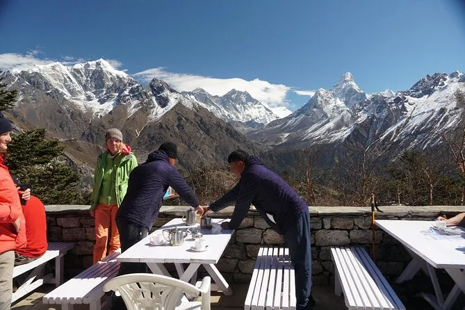 Dein Tag startet mit einer frühen Abholung vom Hotel in Kathmandu, gefolgt von einem Gruppen-Hubschrauberflug über Kalapather und das Everest Base Camp (ohne Landung). Danach gibt es eine einstündige Frühstückspause im Everest View Hotel nahe Namche Bazaar, bevor es zurück zum Hotel in Kathmandu geht.
