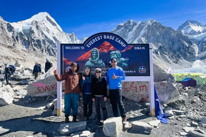 Du wanderst von Kathmandu durch Sherpa-Dörfer wie Namche Bazaar, überquerst hohe Täler mit lokalen Guides, teilst Mahlzeiten in Berg-Gästehäusern und stehst still am Everest Base Camp. Freu dich auf Lachen am Ofen, Himalaya-Sonnenaufgänge und unvergessliche Momente echter Verbundenheit.