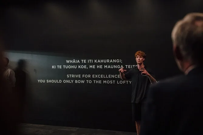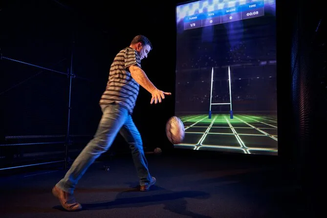 Wir probierten die interaktiven Spiele aus (ich bin eine Niete im Passen, aber meine Begleitung hat’s drauf – die wird mich nie vergessen lassen). Die Nachbildung der Umkleidekabine zeigt Trikots, die fast darauf warten, angezogen zu werden. Beim Gang durch den Spielertunnel trifft dich plötzlich eine Wand aus Sound – auf dem Bildschirm startet der Haka, und es fühlt sich an, als wäre er direkt neben dir. Mir blieb fast die Stimme weg. Selbst wenn man nichts von Rugby oder Māori Kultur versteht, trifft dieser Moment tief. Manaia erklärte jede Geste und jedes Wort, stoppte, damit wir selbst „Ka Mate“ versuchen konnten (ich habe es verhauen, aber er grinste trotzdem).