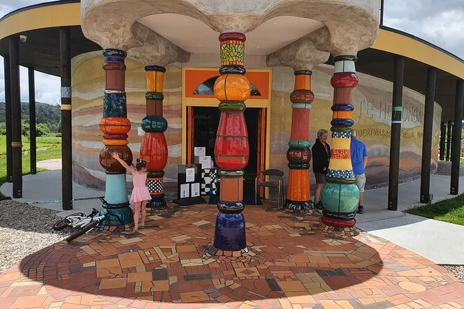 Dein Morgen startet mit Abholung vom Waitangi-Pier oder Paihia I-Site (je nach Tag), inklusive Eintritt und geführtem Rundgang durch die Kawiti Glühwürmchen-Höhlen mit einem lokalen Maori-Familienmitglied. Außerdem ist der Transport zwischen den Stationen inklusive – mit Stopps bei den Hundertwasser-Toiletten in Kawakawa und dem Opua Forest, bevor du nach etwa drei Stunden zurückkehrst.