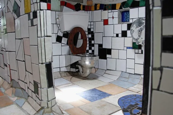 Danach fuhren wir ein kurzes Stück nach Kawakawa. Ich hatte schon von den Hundertwasser-Toiletten gehört, aber sie live zu sehen war… na ja, irgendwie urkomisch? Überall bunte Fliesen, absichtlich knallige Farben und sogar ein Baum, der durchs Dach wächst. Li musste lachen, als ich versuchte, „Hundertwasser“ richtig auszusprechen – ich hab’s wohl total verhauen. Einheimische kamen und gingen, als wäre es ein ganz normaler Dienstag, was mich zum Schmunzeln brachte. Verrückt, was normal wird, wenn man irgendwo lebt.