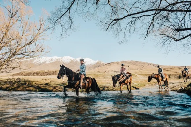 Dein Tag umfasst eine geführte Pferdetour durchs Cardrona Tal mit kompletter Ausrüstung; du wirst passend zu deinem Reitniveau einem Pferd zugeteilt – gib das einfach bei der Buchung an.
