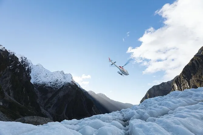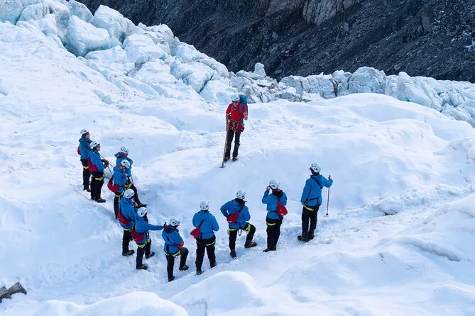 Dein Tag umfasst Hin- und Rückflüge mit dem Helikopter vom Ort Franz Josef direkt auf exklusives Gletschereis, begleitet von einem erfahrenen lokalen Guide, der dich auf einer mittelschweren Wanderung führt. Alle nötigen Wanderutensilien – Gore-Tex-Jacken, Hosen, Mützen, Handschuhe, robuste Stiefel mit Steigeisen – werden gestellt. Während der Tour erfährst du spannende Fakten zur Gletscherkunde und Māori-Legenden, während du die sich ständig verändernden Eisformationen erkundest, bevor es per Helikopter zurückgeht.