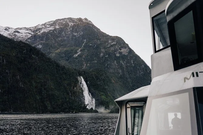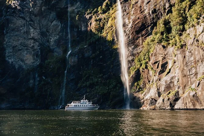 Dein Tag beinhaltet eine 2-stündige Bootstour ab Milford Sound Besucherzentrum mit kostenlosem Tee und Kaffee. Kleine Boote bringen dich nah an Wasserfälle und Tiere heran – die Tour ist barrierefrei und Kinder unter drei reisen kostenlos mit.