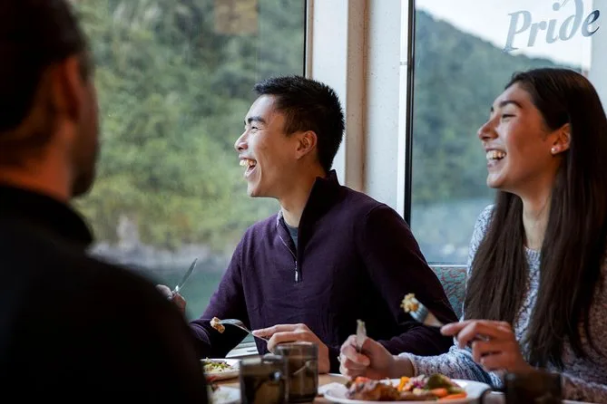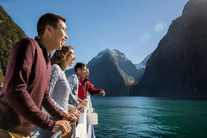 Dein Tag beinhaltet Hin- und Rückfahrt im modernen Bus mit Panoramafenstern für tolle Ausblicke; einen informativen lokalen Fahrer-Guide; mehrere landschaftliche Stopps wie den Mirror Lakes Walk und Monkey Creek; Zugang zu einem speziell gebauten Katamaran für bis zu zwei Stunden Milford Sound Kreuzfahrt; frisch zubereitetes Mittagessen an Bord; kostenlosen Tee und Kaffee während der Fahrt; sowie mehrsprachige Kommentare via App, damit alle entspannt folgen können – bevor es abends zurück nach Hause geht.