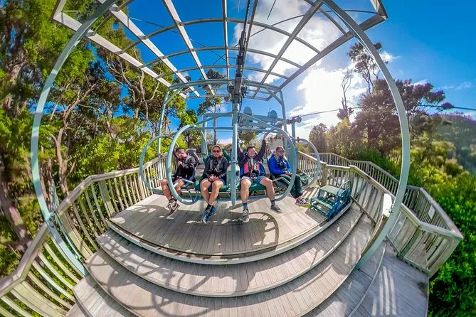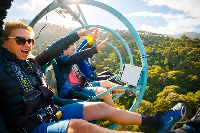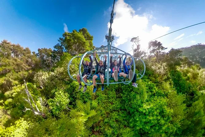 Erlebe eine Fahrt durch den Urwald mit einem lokalen Guide, bevor du bei Cable Bay, Nelson, auf das Skywire-Abenteuer startest. Spüre, wie dein Herz rast, während du vorwärts und rückwärts über die Baumwipfel gleitest – nebeneinander sitzen bis zu vier Personen. Inklusive Transfer vom Base Cafe und jede Menge Spaß unterwegs.