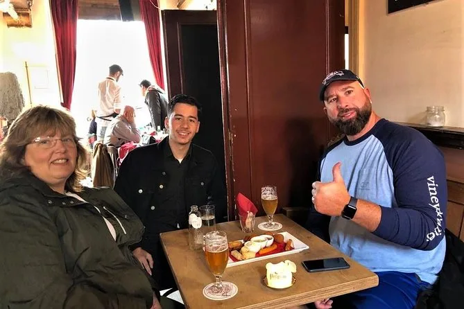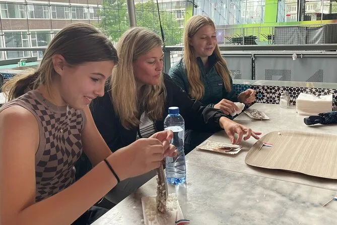 Der Alte Hafen sah aus wie eine Postkarte, aber nicht kitschig – alte Boote schaukelten sanft, während Studenten am Kai entspannt Pommes aßen. Überall spürt man Geschichte, aber auch, dass hier wirklich Menschen leben, nicht nur Geschichten erzählt werden. Mit dem Watertaxi sausten wir über den Fluss (falls du noch nie mitgefahren bist: Es ist schnell, laut und lässt das Herz kurz höher schlagen), bevor wir eingelegten Hering probierten. Ich zögerte, wagte es dann aber – salzig, kalt und überraschend lecker mit Zwiebeln. Marije machte Fotos von uns beim Probieren der lokalen Snacks; sie sagte, alles sei inklusive, also keine Sorge ums Bezahlen unterwegs.