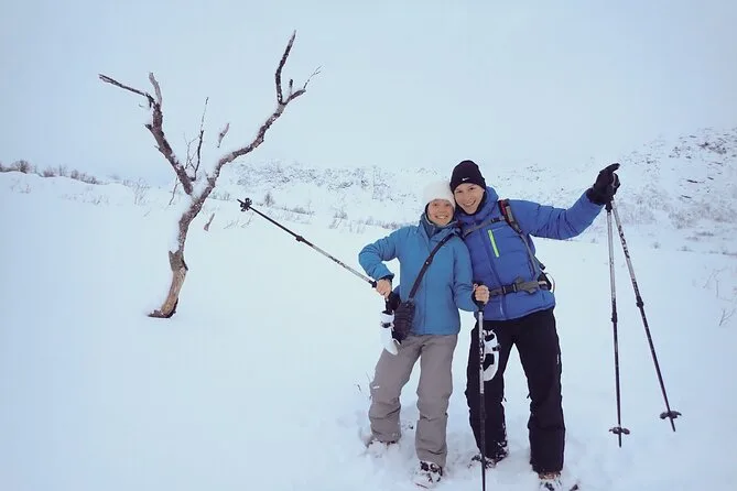 Erlebe Kvaløyas ruhige Winterwelt bei einer entspannten Schneeschuhwanderung mit lokalem Guide, inklusive Pausen für heiße Getränke und Geschichten. Danach entspannst du im Café Bryggejentene am Ersfjord – probiere den hausgemachten Kuchen und genieße dieses typisch norwegische Wohlfühlgefühl, das lange nachwirkt.