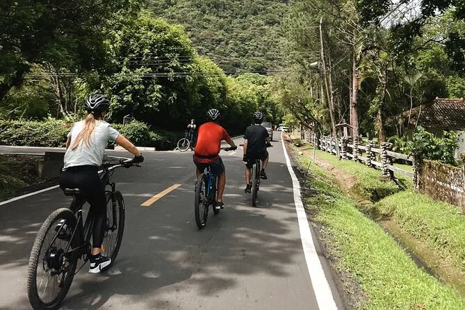 Wir grüßten Familien, die von ihren Veranden winkten, Kinder versuchten, uns mit ihren alten Rädern zu überholen (sie verloren), und sogar ein Mann verkaufte Orchideen aus seinem Pickup. Das Tal selbst ist so grün, dass es fast weh tut, hinzuschauen – ich blieb immer wieder stehen, um die Aussicht zu genießen. Im Mietpreis waren Wasser und Snacks dabei, die ich in meinem Rucksack verstaut hatte – klingt klein, machte die Tour aber viel entspannter als gedacht. Nach drei Stunden fühlten sich meine Beine noch frisch an; es ist fast wie schummeln, aber hier stört das niemanden.