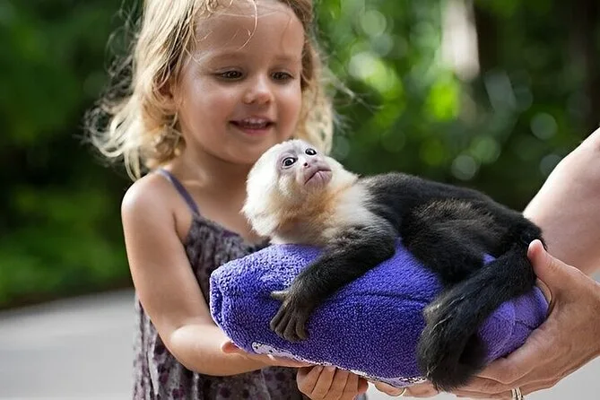 Du kannst Kapuzineraffen, Brüllaffen, Faultiere, Tukane, Krokodile, Leguane und bunte Vögel entdecken.