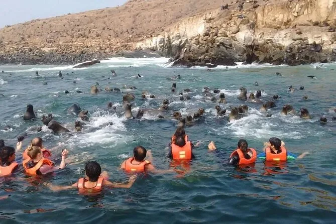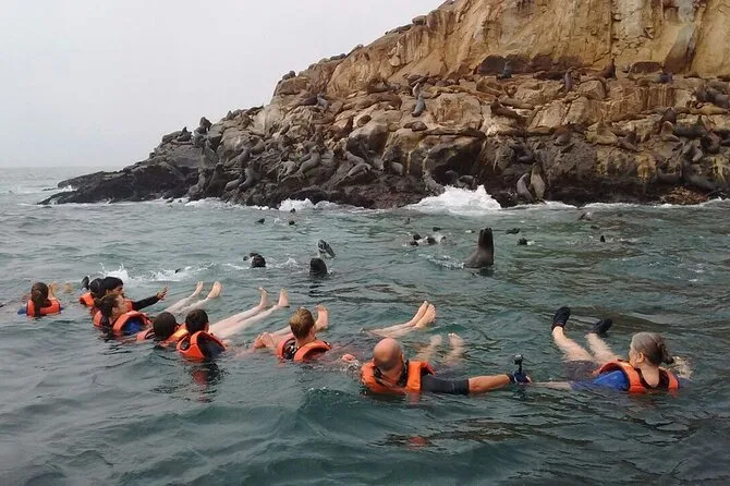 Dein Tag beinhaltet die Speedbootfahrt ab Callao mit einem lokalen Guide, der unterwegs spannende Geschichten erzählt; alle Neoprenanzüge für das Schwimmen mit Seelöwen sind inklusive; nach dem Schwimmen gibt es Wasser und Snacks; an Bord gibt es Toiletten; optional ist eine Hotelabholung möglich, wenn im Voraus gebucht – Rückkehr gemeinsam zum Hafen.