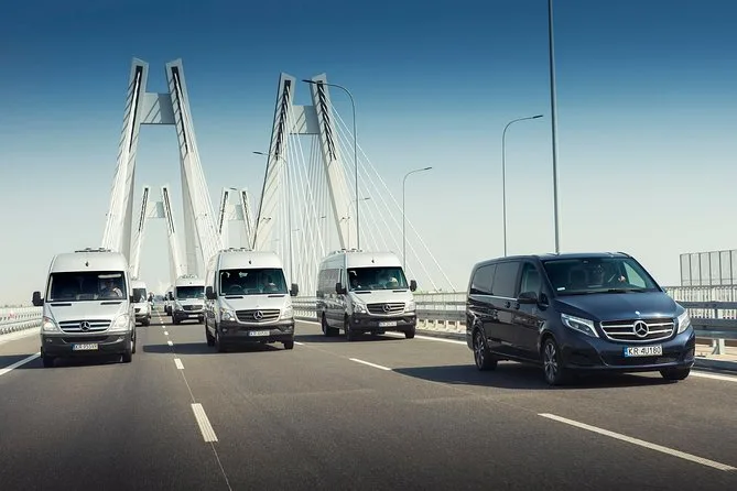 Dein Transfer beinhaltet Meet & Greet am Krakauer Flughafen oder direkt an der Hoteltür, Unterstützung mit Standardgepäck (ein Koffer plus Handgepäck pro Person), alle Steuern und Gebühren sind inklusive – keine versteckten Kosten – sowie Transport in einem modernen, klimatisierten Minivan oder Pkw. Dein Fahrer verfolgt deine Flugankunft, damit du nie warten musst, und übergibt dir vor der Fahrt eine kostenlose Stadtkarte für Krakau.