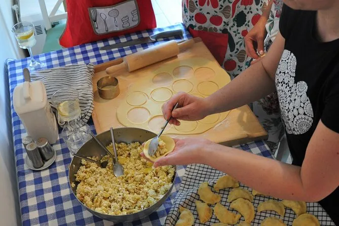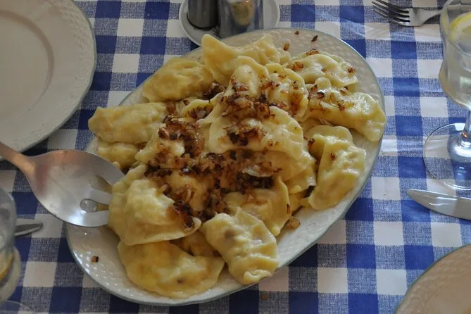 Dein Tag beginnt mit dem Einkauf frischer Zutaten auf Krakaus historischem Markt mit deiner Gastgeberin. Unterwegs probierst du saisonale polnische Snacks wie geräucherten Käse oder eingelegte Gurken. Danach geht es in eine gemütliche Küche, wo du Pierogi von Grund auf selbst machst – vom Teig bis zur Füllung. Gemeinsam genießt ihr die selbstgemachten Teigtaschen bei Kaffee oder Tee und regionalem Alkohol, bevor es zurück in die Stadt geht.