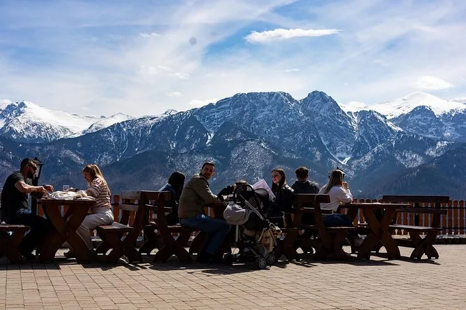 Dein Tag umfasst Abholung und Rückfahrt vom Hotel in Krakau, alle Transfers zwischen den Stationen, Eintrittskarten für die Seilbahn auf den Gubałówka (wenn gewählt), Besuche traditioneller Holzhäuser im Dorf Chochołów, Verkostungen von Bergkäse und regionalem Schnaps, freie Zeit auf der Krupówki in Zakopane sowie ein 3-Stunden-Ticket für die Thermalbäder in Chochołów bei entsprechender Option – alles begleitet von einem freundlichen englischsprachigen Fahrer oder Guide.