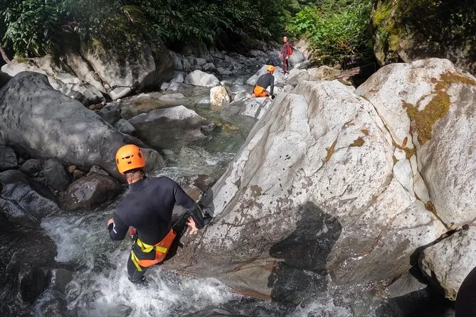 Dein Tag umfasst die komplette Canyoning-Ausrüstung – Neoprenanzug mit Socken, robuste Stiefel, Helm und Klettergurt – sowie die Begleitung erfahrener Einheimischer, die jeden Winkel der Flusscanyons von Ribeira Grande kennen. Sag einfach vorher deine Schuhgröße, damit alles perfekt passt, wenn du ankommst.