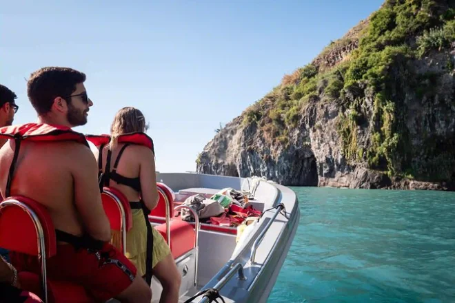 Dein Tag umfasst eine erfahrene lokale Crew, die dich mit dem Speedboot entlang der Küste Madeiras begleitet, Wasser und Süßigkeiten zur Erfrischung, die Nutzung von Schnorchelausrüstung bei einer Badepause im kristallklaren Wasser sowie Schwimmwesten für deine Sicherheit – bevor es gemeinsam zurück zum Hafen von Funchal geht.