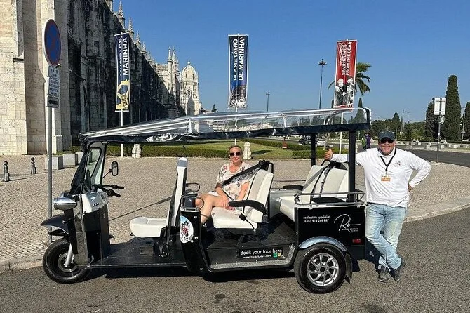Dein Tag umfasst Hotelabholung und Rückfahrt im Zentrum von Lissabon (oder Treffpunkt außerhalb), private Fahrt im elektrischen Tuk Tuk mit Decken und Regenschutz, Live-Kommentare von einem erfahrenen lokalen Guide, der an jedem Stopp Geschichten erzählt – von Alfama bis Belém – sowie eine persönliche Unfallversicherung während der Tour.