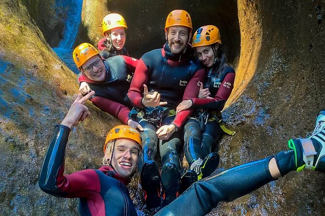 Dein Tag beinhaltet die Abholung vom Hotel in Funchal oder Caniço mit klimatisiertem Fahrzeug; komplette Canyoning-Ausrüstung, die von erfahrenen Guides angepasst wird; Sicherheitseinweisungen; zwei Guides während der gesamten Tour; digitale Fotos von deinem Abenteuer; sowie optional die Miete von speziellen Schuhen für besseren Halt auf den Felsen – so kommst du trocken und glücklich zurück.