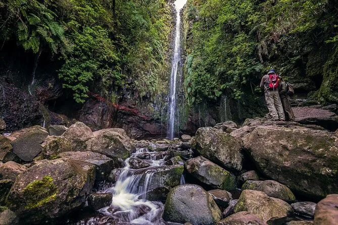 Wandere mit einem lokalen Guide durch den Laurisilva Wald Madeiras, lausche den Wasserfällen im Rabaçal Tal, halte am Risco Wasserfall für Geschichten und erfrischenden Nebel, und beende die Tour mit einem geheimnisvollen Gang durch einen alten Tunnel auf der sonnigen Südseite der Insel.