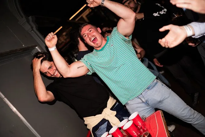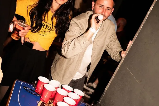 Deine Nacht startet mit dem Treffen nahe der Fonte dos Leões, gefolgt von fachkundiger lokaler Begleitung durch vier Bars im Zentrum von Porto mit sieben Drinks (Bier, Sangria oder Shots), klassischen Trinkspielen wie Beer Pong und Flip Cup zum Kennenlernen, exklusiven Drink-Angeboten unterwegs, Wasser und Softdrinks für die Pause, plus VIP-Einlass ohne Anstehen in einen der Top-Clubs, wo du bis zum Morgengrauen tanzen kannst.