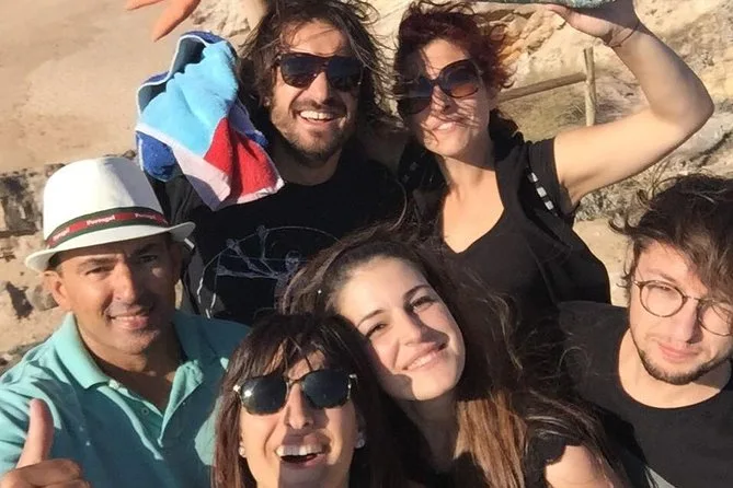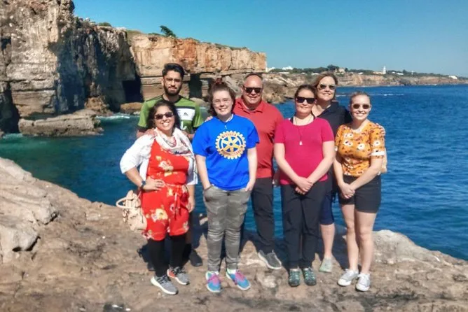 Danach ging’s zum Cabo da Roca – wie versprochen windig, Salz auf den Lippen, Haare im Gesicht. Ein Schild weist darauf hin, dass das der westlichste Punkt Europas ist, aber was mir im Kopf blieb, war, wie alle für einen Moment still standen und aufs endlose Blau des Atlantiks schauten, während die Wellen unten gegen die Felsen donnerten. João zeigte uns Fischer auf den Klippen („verrückte Typen“, meinte er). Dann Boca do Inferno: wilde Gischt gegen schwarze Felsen, Möwen kreischten über uns. Jemand verlor seinen Hut im Wind, und alle lachten.