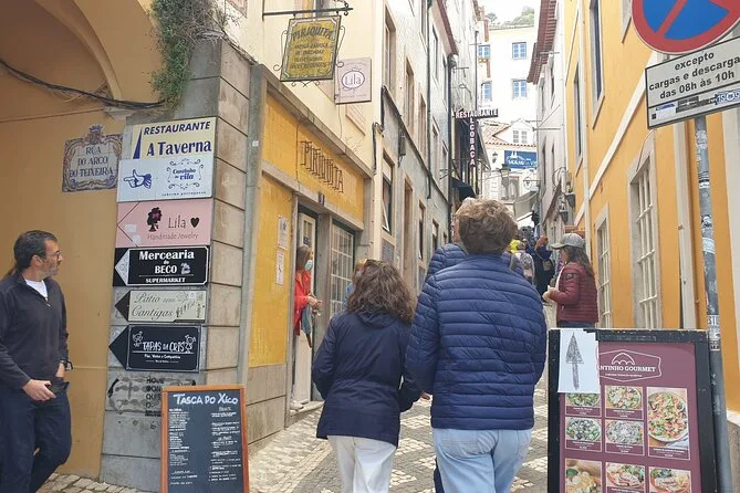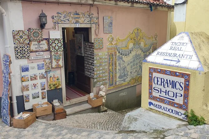 Danach schlenderten wir ins Dorf Sintra zum Mittagessen. Dort gibt es eine Bäckerei namens Piriquita (ich hatte vorher nie von travesseiros gehört – so ein blättriges Kissen mit Mandelcreme gefüllt?). Ich versuchte auf Portugiesisch zu bestellen, und die Frau hinter der Theke lächelte nur und gab mir gleich zwei. Wir hatten etwa eine Stunde Zeit, die Gassen zu erkunden; ich habe vor allem Leute beobachtet und Fotos von den bemalten Fliesen an den Haustüren gemacht. Das Wetter spielte verrückt – mal Sonne, dann ein kalter Wind aus den Hügeln.