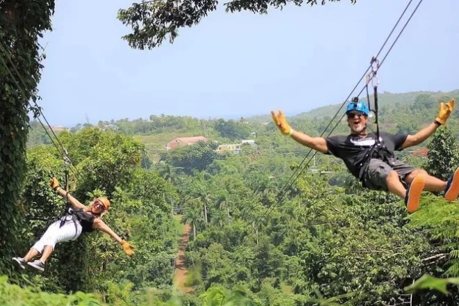 Die Tour umfasst acht Zipline-Strecken durch die Regenwaldhänge im Osten Puerto Ricos.