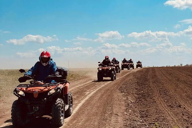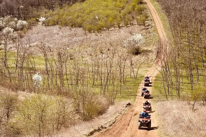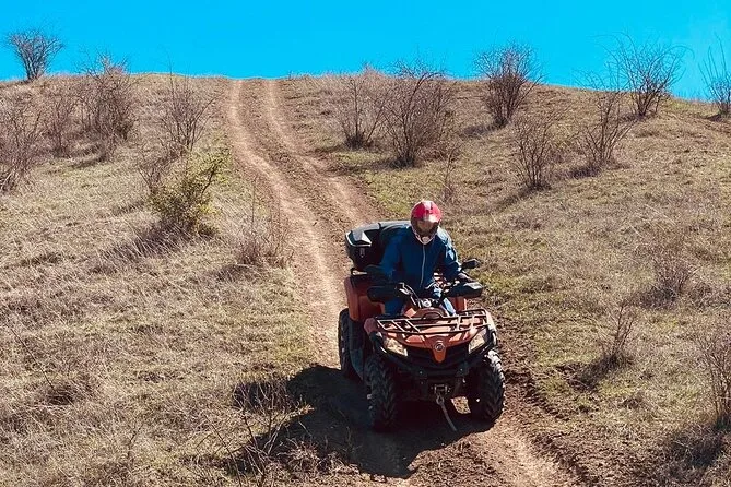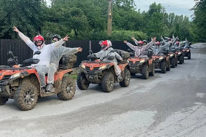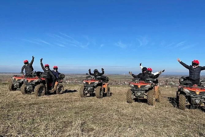 Dein Tag umfasst die Abholung vom Hotel in Bukarest, alle nötigen Sicherheitsausrüstungen wie Helme, eine Wasserflasche für unterwegs, zwei Stunden Fahrt durch die Wälder und Hügel Süd-Rumäniens auf modernen ATVs mit einem lokalen Guide, der dich sicher begleitet, und die Rückfahrt zum Hotel.