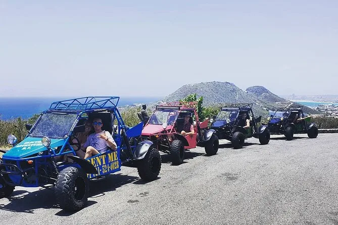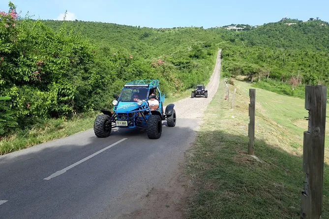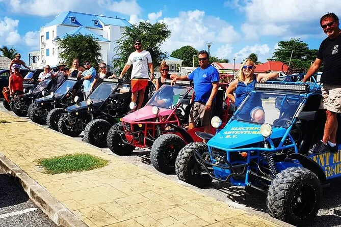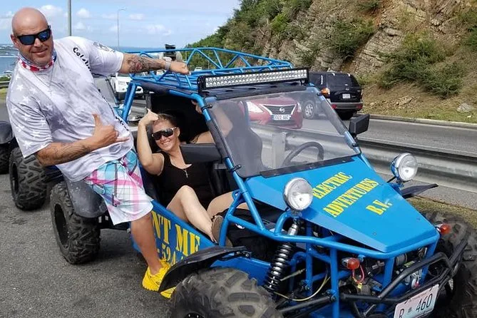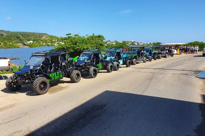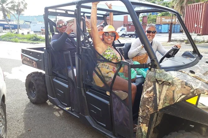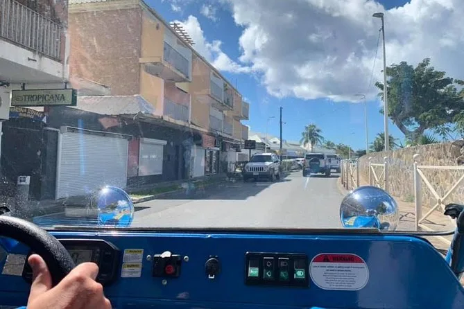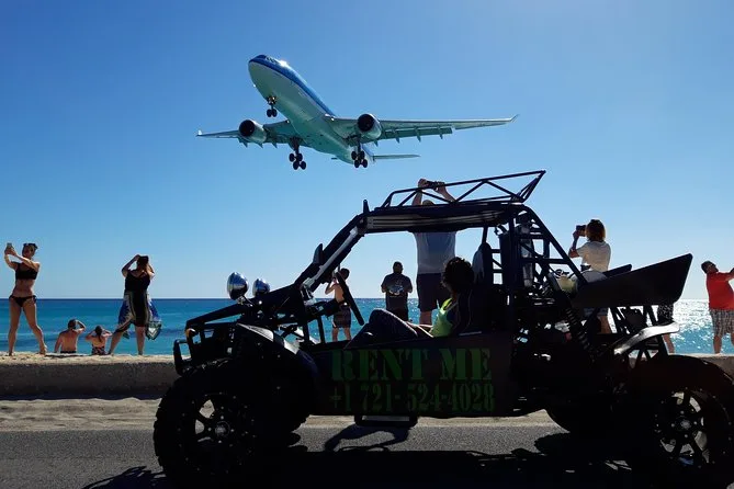 Du fährst deinen eigenen Buggy über beide Seiten von St. Maarten, mit einer handmarkierten Karte, stoppt für frische Leckereien auf dem Markt in Marigot, beobachtest startende Flugzeuge am Maho Beach und schlenderst entspannt in stille Buchten oder lebendige Orte – ganz wie du willst. Ein Tagesausflug, bei dem du das Inselgefühl mit Sonne im Gesicht und Wind im Haar ganz frei genießen kannst.