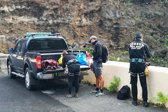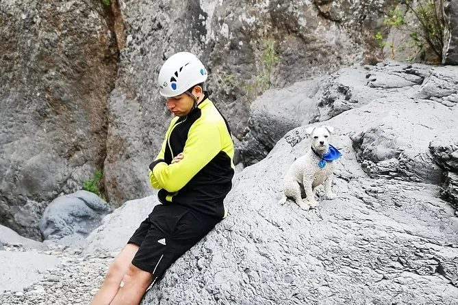 Du wanderst durch den Barranco del Rey, bekommst von erfahrenen Guides die Ausrüstung und kletterst in deinem Tempo an echten Vulkanfelsen. Sicher, spaßig und überraschend entspannend – und als Bonus gibt’s einen freundlichen Hund als Begleitung.
